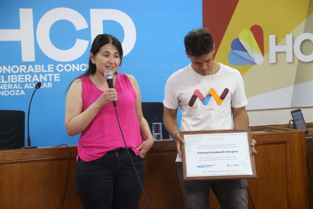 Recibieron por parte del establecimiento educativo Graciela Farías, vicedirectora y Leandro Bolpato, profesor de educación física.